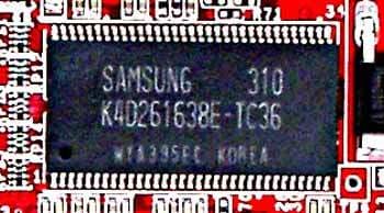 | Микросхемы памяти производства Samsung. Время выборки у микросхем памяти 3.6ns, что соответствует частоте работы примерно 275 (550) МГц, память работает на этой частоте. Частота работы GPU 325 MHz. | ![]() |