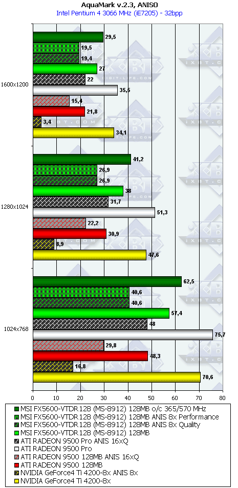 - AquaMark (Massive Development) игровой тест, демонстрирующий работу платы в DirectX 8.1, Shaders, HW T&L.
