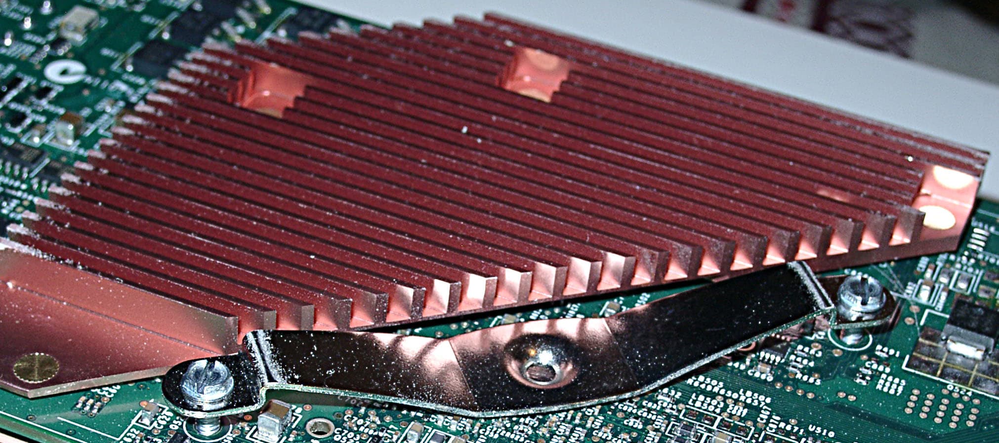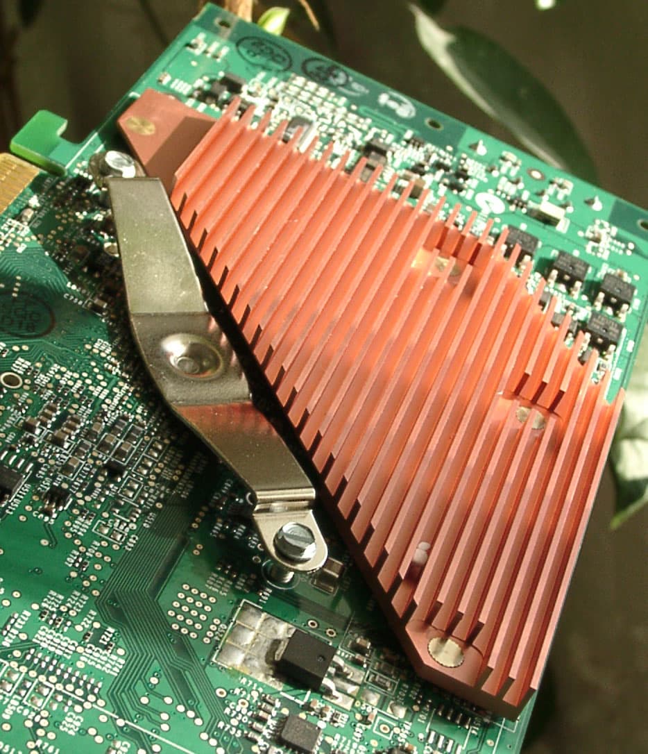 Перед нами уникальный продукт в части конструкции. Разумеется, прежде всего бросается в глаза охлаждающее устройство громадного размера. Мы о нем поговорим чуть позже, а сейчас я замечу, что в силу крайне сложной системы крепления, а также жесткого приклеивания радиатора к поверхности чипа, я не стал снимать с карты такой кулер, а без радиатора на снимке выше представлена карта, имевшаяся в нашей лаборатории ранее. Хотя между ними и есть различия в некоторых элементах PCB, в целом их можно считать одинаковыми.
