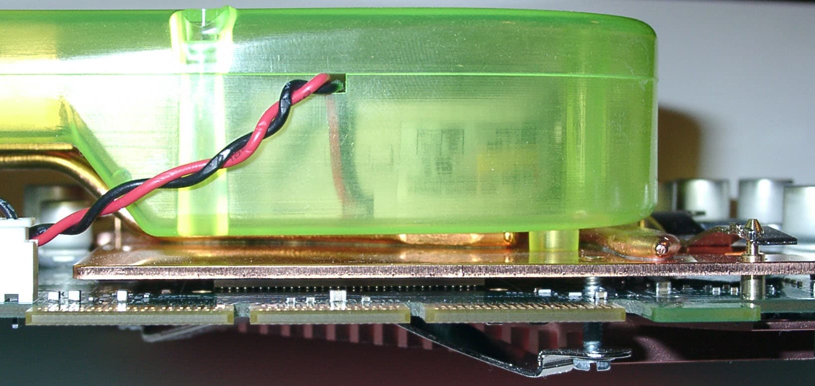 В конце рассмотрения особенностей видеокарты стоит заметить, что она имеет почти такую же длину, как и GeForce4 Ti 4600. Ну и, конечно, нельзя не увидеть, что плата требует внешнее питание, для чего справа вверху на PCB есть специальное гнездо (такое же, какое мы могли ранее видеть у 3dfx Voodoo5 5500, кстати, опять же любопытная аналогия: "FX" — в честь 3dfx, разъем внешнего питания такой же, как у Voodoo5, карта длинная (немного не хватает до длины Voodoo5 5500), ну и номер 5800 — недалеко от 5500 ушел :-) ).