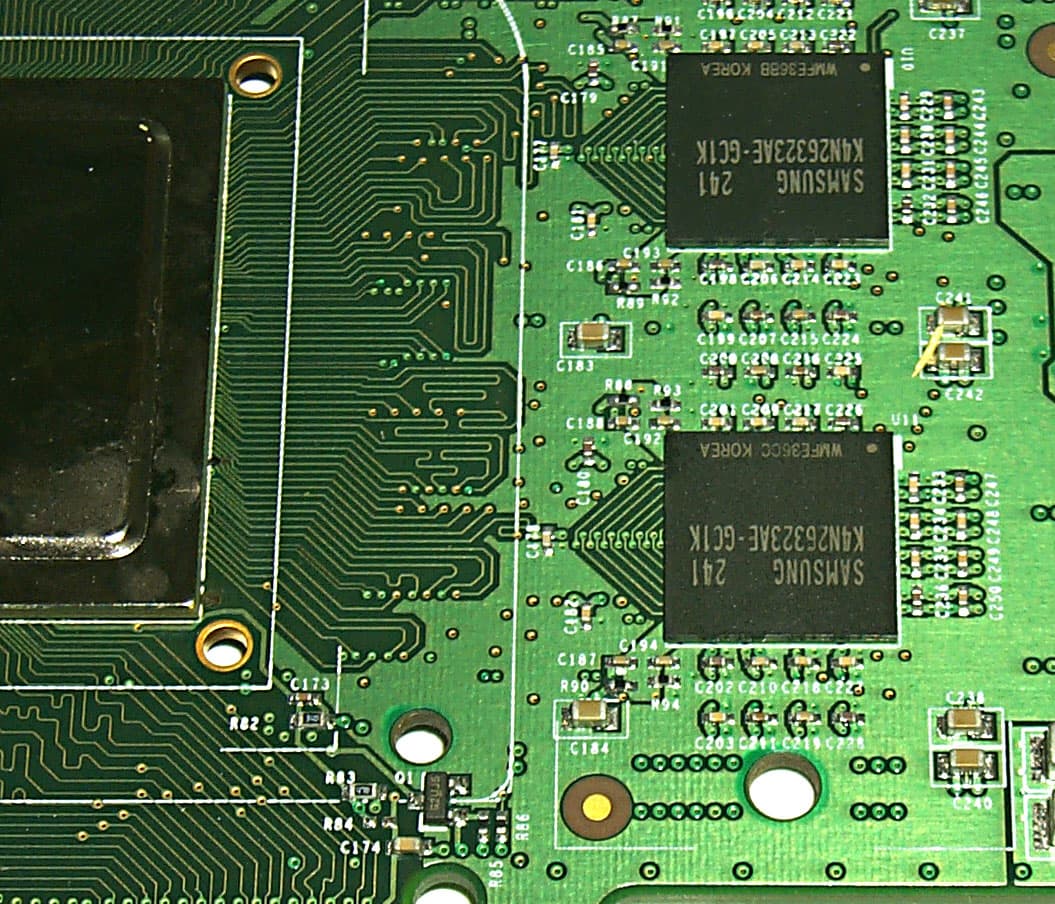 Сама PCB очень сложна. Несмотря на поддержку только 128-битной шигы обмена с памятью, плата выполняется по 12-слойному дизайну, из которых 2 слоя — это экранирование PCB: