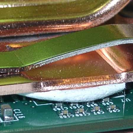 Это сделано для защиты суперскоростной памяти от наводок. Вообще, по некоторым сведениям, GDDR-II память весьма капризна в этом плане. Кстати, обратите внимание на то, с какой тщательностью выполнено охлаждение именно памяти. Мало того, что используется радиатор из медного сплава, там еще есть особая термопрокладка, обеспечивающая 100-процентную теплопередачу.