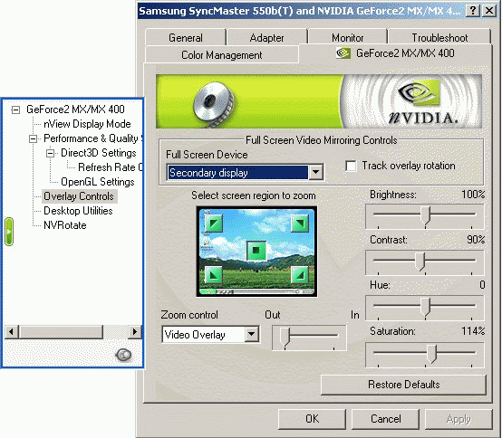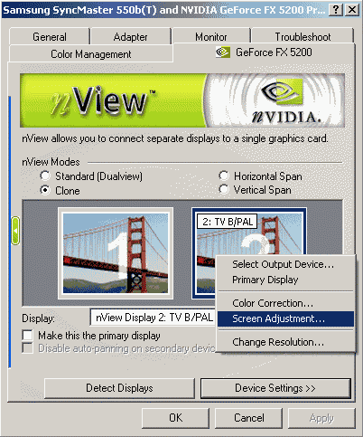 Пословица о том, что лучшее враг хорошего, вполне справедлива и в нашем случае, так как все основные моменты, связанные с этим, были подробно описаны в статье Особенности подключения и настройки TV-out видеокарт класса GeForce4Ti и GeForce4MX (GeForce2MX) с технологией TwinView (nView).