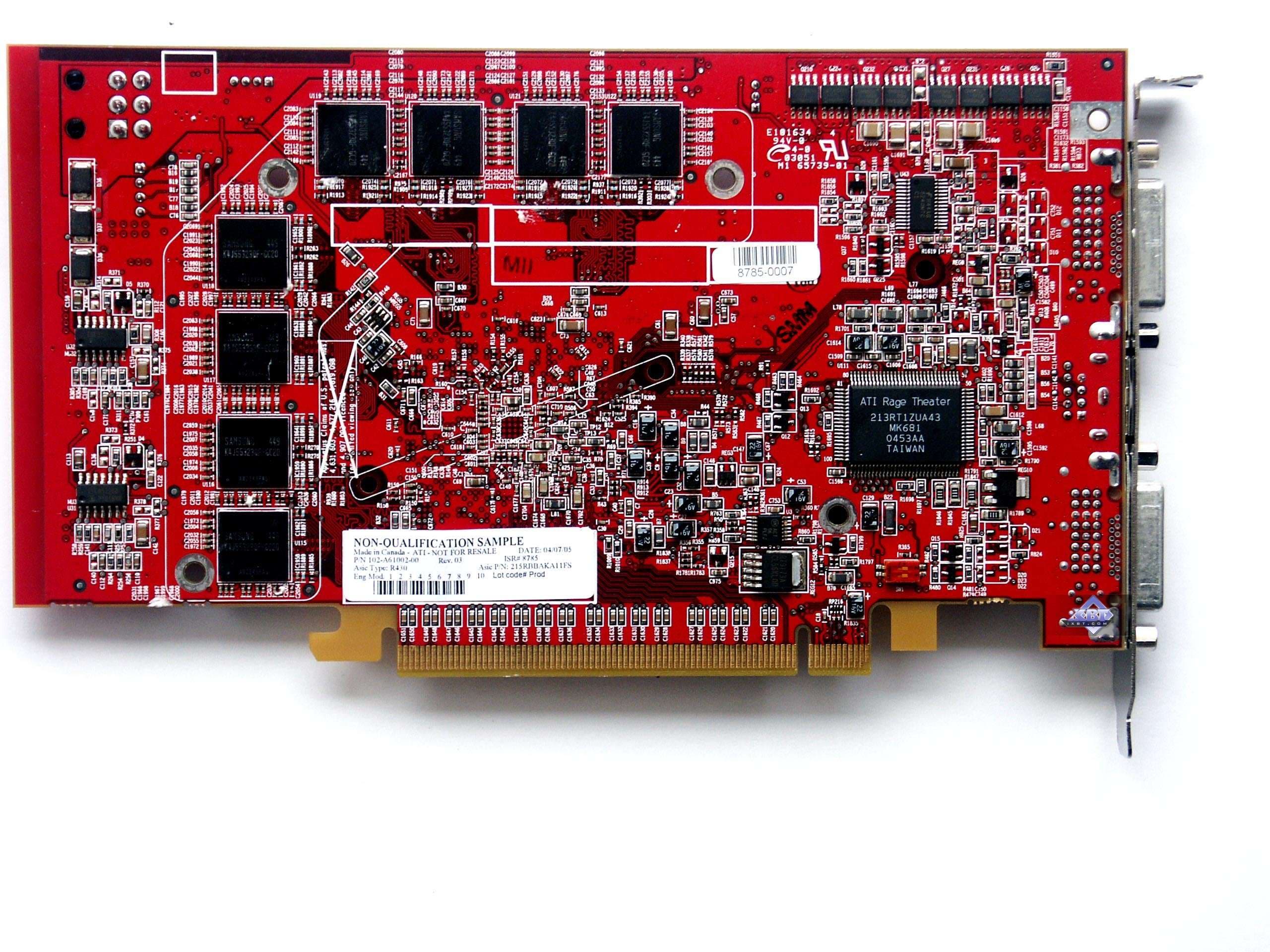 Плата на основе X800 XL также полностью соответствует эталону, кроме одного момента: у нее нет внешнего питания. Я с самого начала рассмотрения подобных карт подозревал, что ATI распаяла этот разъем и соответствующие элементы на PCB ради перестраховки, а на самом деле потребление вовсе не переходит известные 75 Вт (максимум, что способны «переварить» системные платы с PCI-E по передаче токов через материнку).