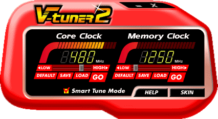 Для более комфортной работы с ускорителями Gigabyte издавна поставляет свою фирменную утилиту VTuner. Нас же интересует ее составная часть, которая занимается разгоном, то есть дает возможность регулировать частоты работы. На первом скриншоте показана частота работы GTX в 2D, на втором — в 3D. Разумеется, та же утилита прекрасно может работать и с X800 XL.