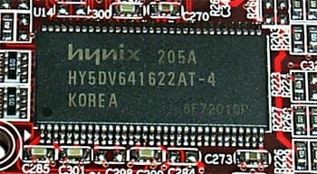 | На видеокарте установлены микросхемы памяти от Hynix со временем выборки 4ns, что соответствует частоте работы 250 (500) МГц, на ней память и работает. Графический процессор тактован также на 250 МГц. | ![]() |