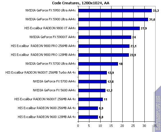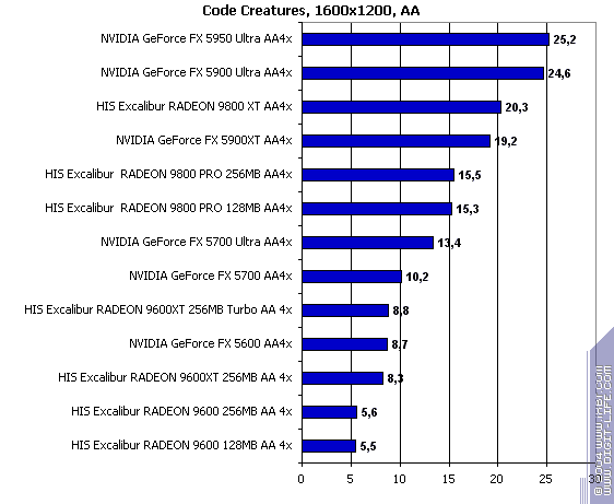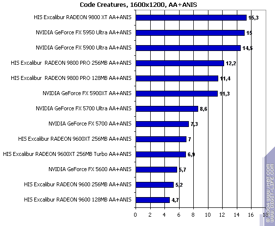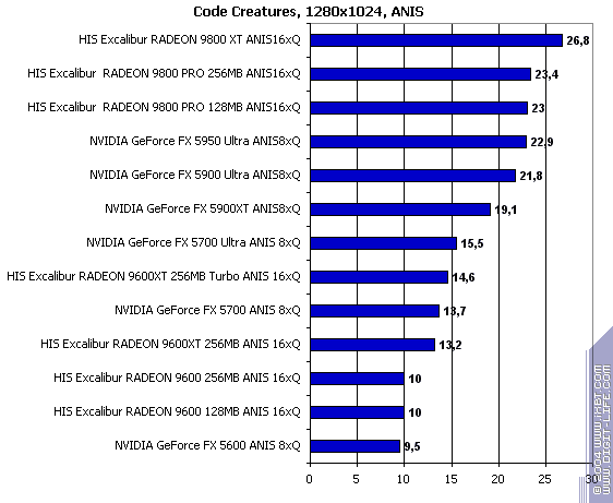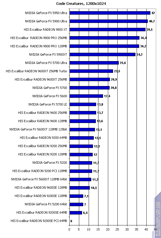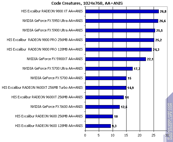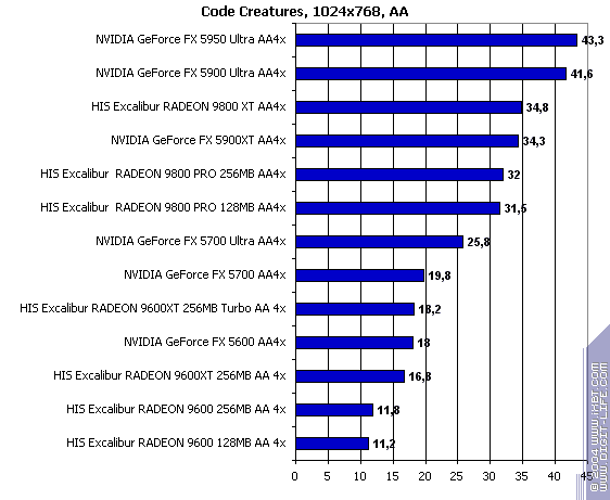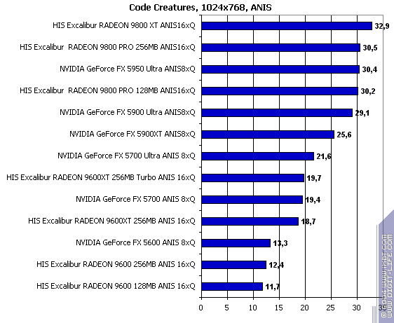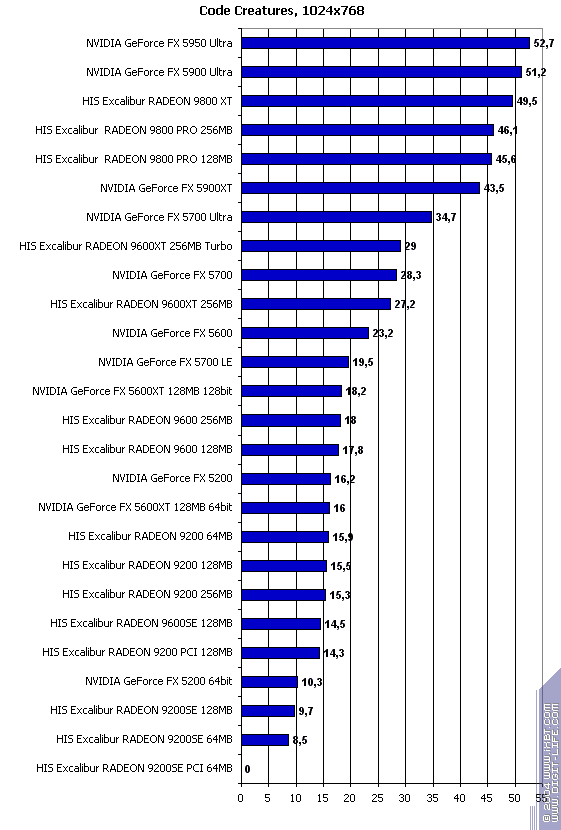 - Code Creatures Benchmark Pro (CodeCult) игровой тест, демонстрирующий работу платы в DirectX 8.1, Shaders, HW T&L.