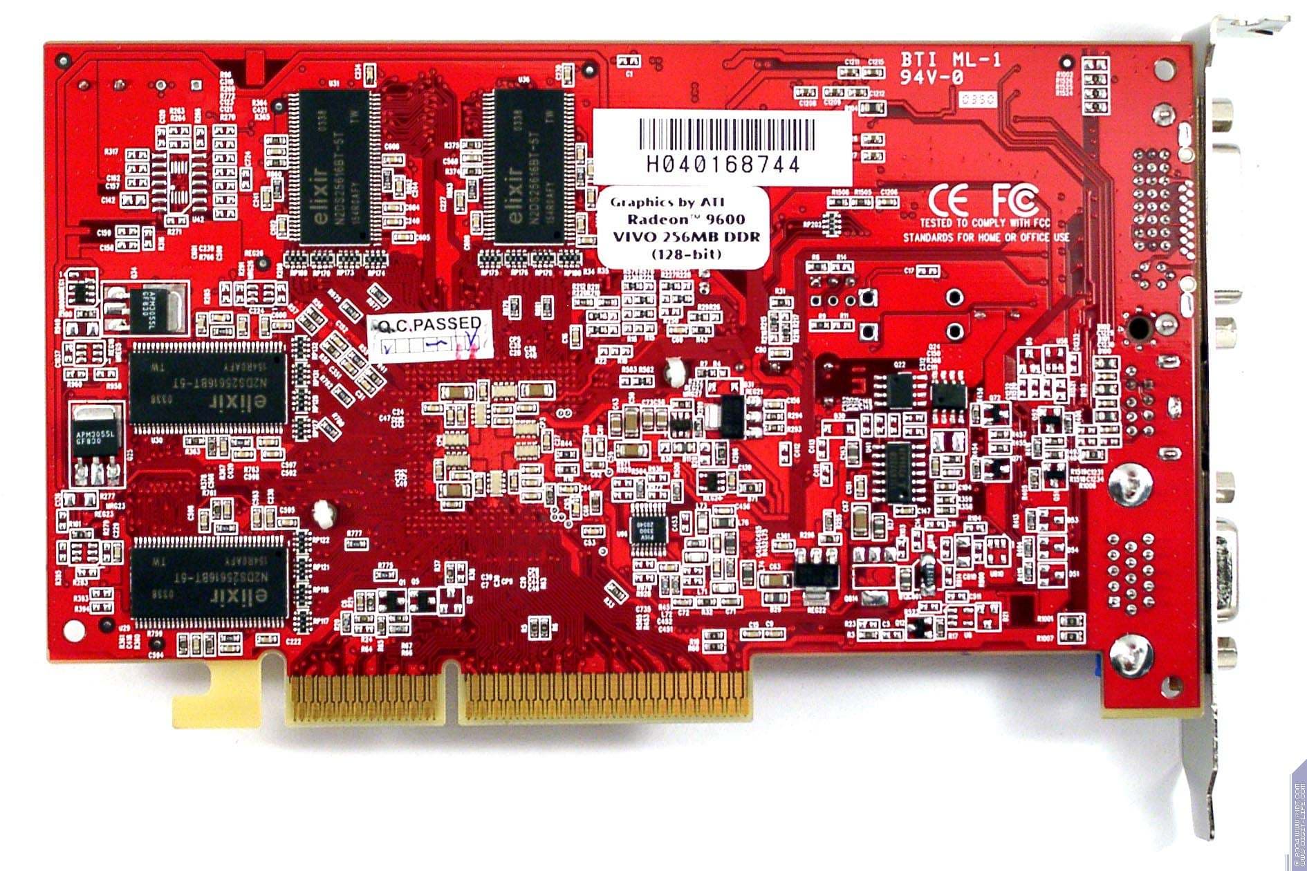 - RADEON 9600 (128/256MB DDR): 325/200 (400) MHz, 128bit шина обмена с памятью, 4 конвейера рендеринга и 4 текстурных блока (пиковая скорость закраски — 1400 мегапикселей и мегатекселей в секунду), DirectX 9.0;