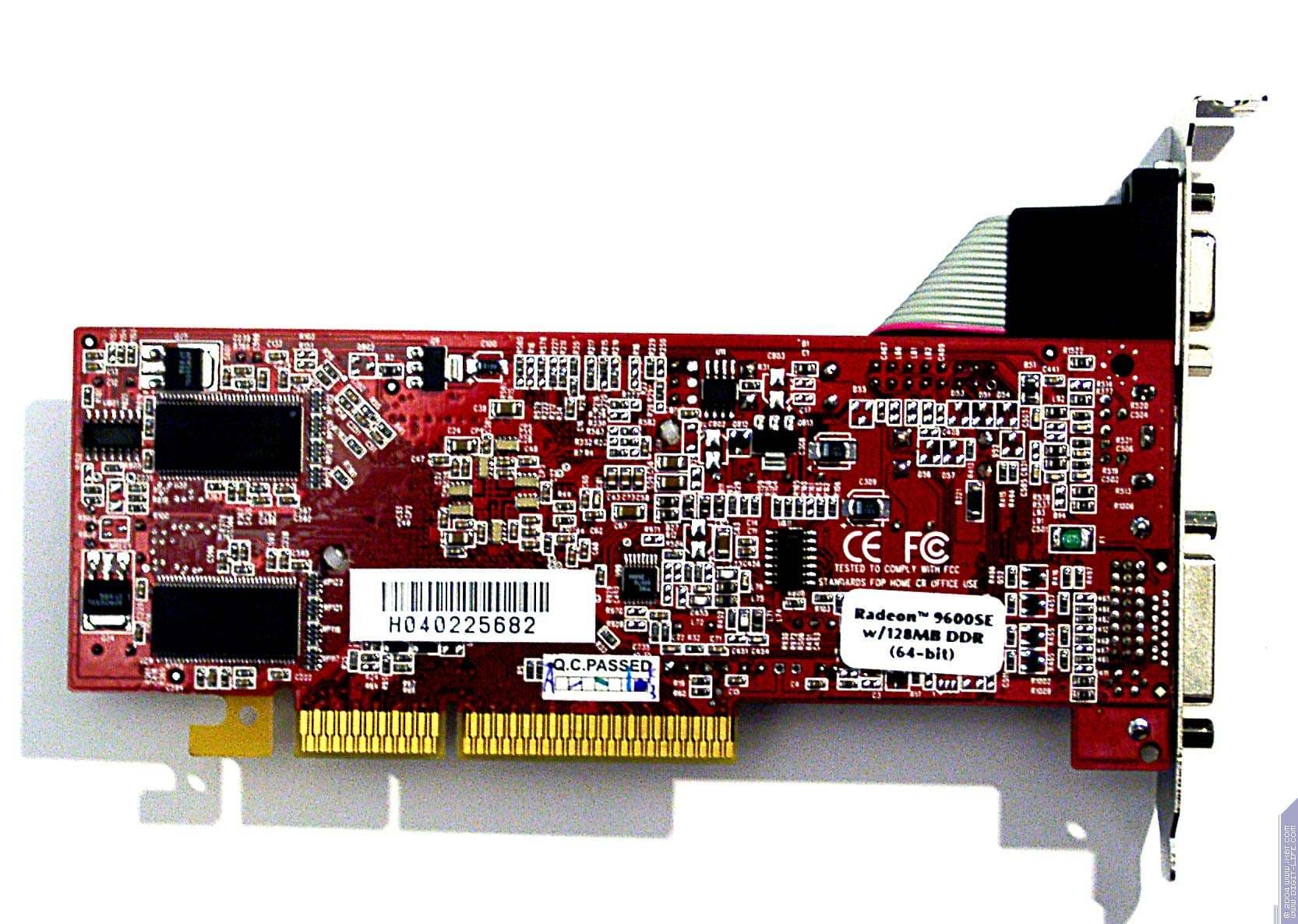 - RADEON 9600SE (64/128MB DDR): 325/200 (400) MHz, 64bit шина обмена с памятью, 4 конвейера рендеринга и 4 текстурных блока (пиковая скорость закраски — 1400 мегапикселей и мегатекселей в секунду), DirectX 9.0;