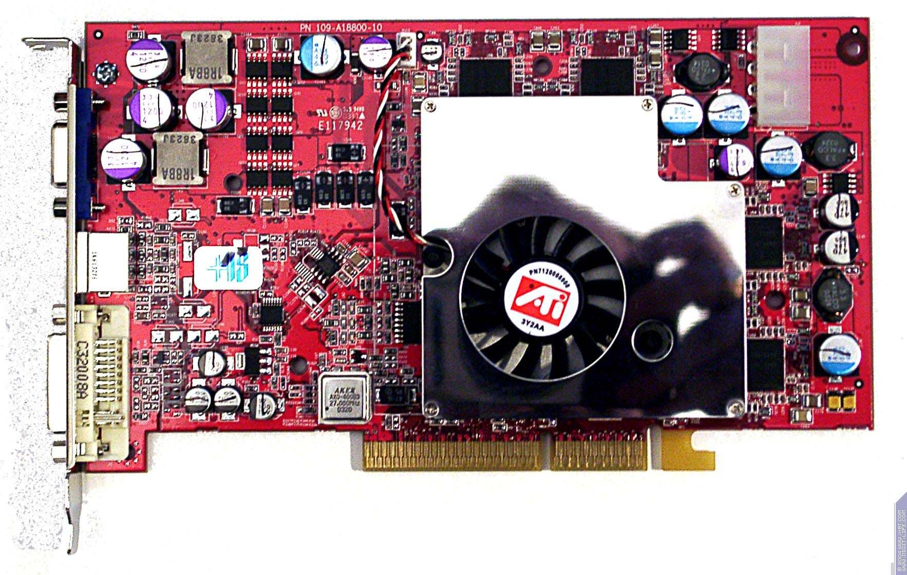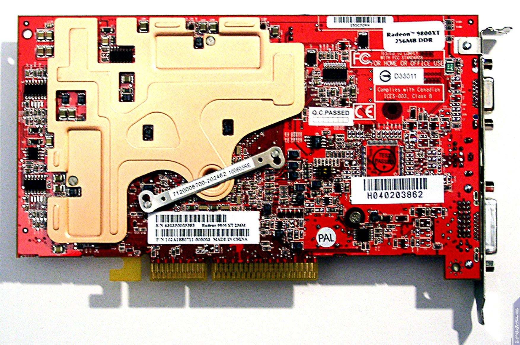 - RADEON 9800 XT (256MB DDR): 412/365 (730) MHz, 256bit шина обмена с памятью, 8 конвейеров рендеринга и 8 текстурных блоков (пиковая скорость закраски — 3296 мегапикселей и мегатекселей в секунду), DirectX 9.0;