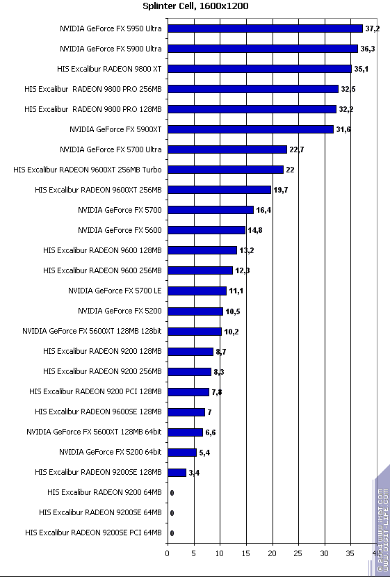 - HIS Excalibur RADEON 9200 64/128/256MB VIVO/Classic: также уровень DX81-карт. Полноценная 128-битная шина и чуть более высокие частоты поднимают планку применения таких карт. Разумеется, для современных DirectX 9.0 игр такие продукты вряд ли подойдут, однако игр такого класса пока очень мало, а во всех остальных при невысоких разрешениях RADEON 9200 будет неплох. Конечно, повышает привлекательность наличие VIVO у соответствующих карт. А вот наличие 256 мегабайт памяти в данном случае, конечно, неуместно. Таким платам оно вовсе не требуется. Все протестированные карты работали прекрасно, нареканий не было.