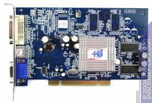| Карты имеют интерфейс AGP x8/x4/x2, 64 МБ памяти DDR SDRAM, размещенной в 8-ми микросхемах на лицевой и оборотной сторонах PCB. Микросхемы памяти производства Hynix. Время выборки у микросхем памяти 5ns, что соответствует частоте работы 200 (400) МГц, на которой память и работает. Частота работы GPU 250 MHz. Шина обмена с памятью 128 bit. | ![]() |