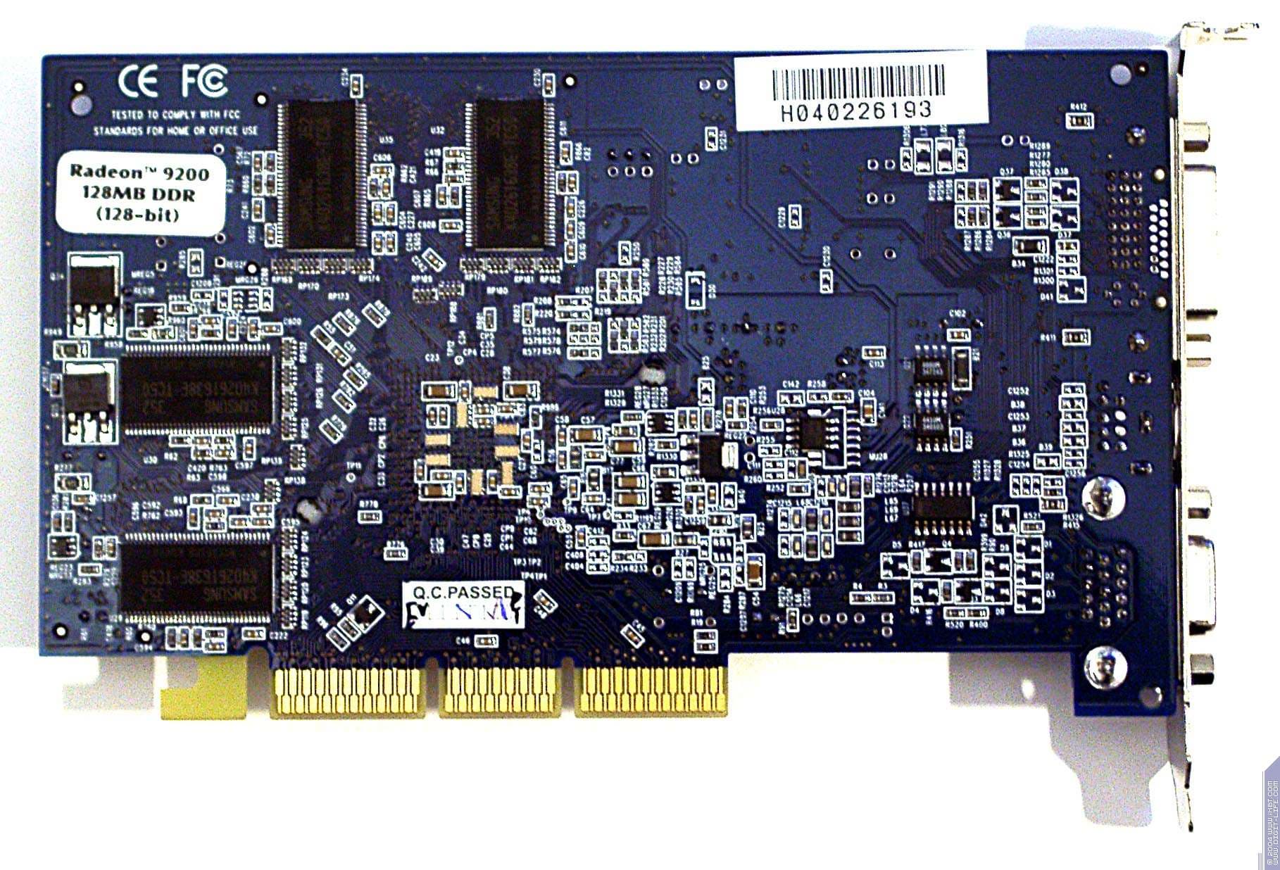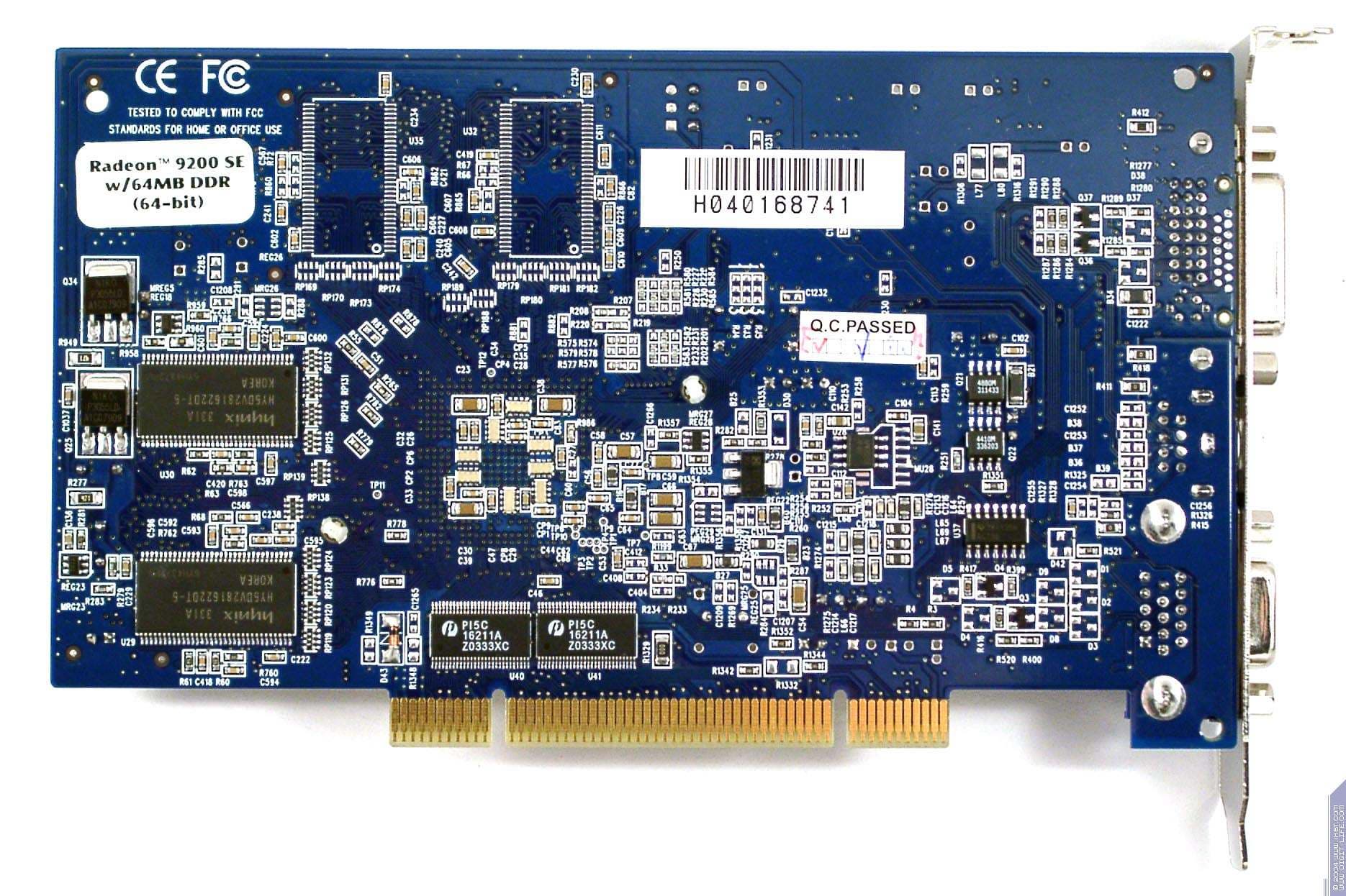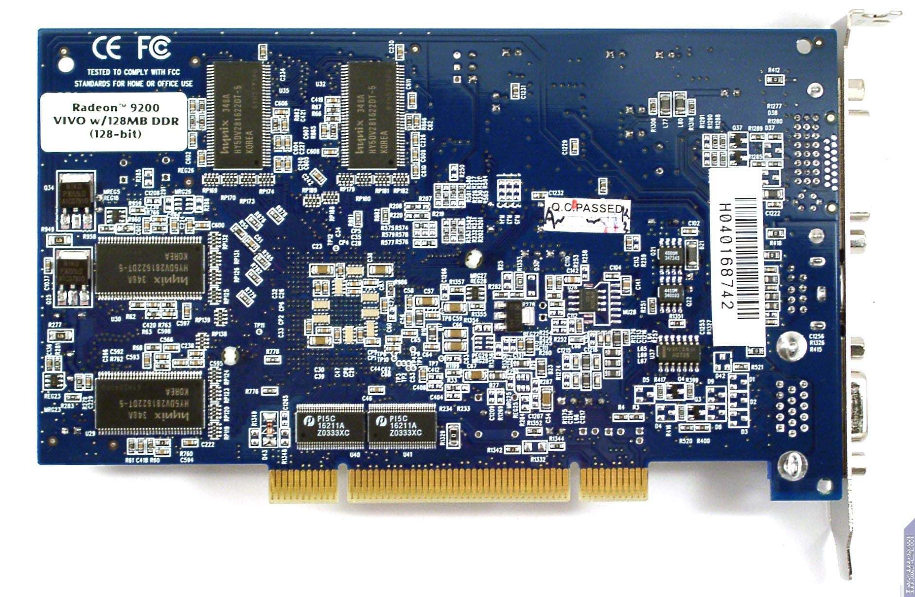 - RADEON 9200SE (64/128MB DDR): 200/166 (333) MHz, 64bit шина обмена с памятью, 4 конвейера рендеринга и 4 текстурных блока (пиковая скорость закраски — 800 мегапикселей и мегатекселей в секунду), DirectX 8.1;