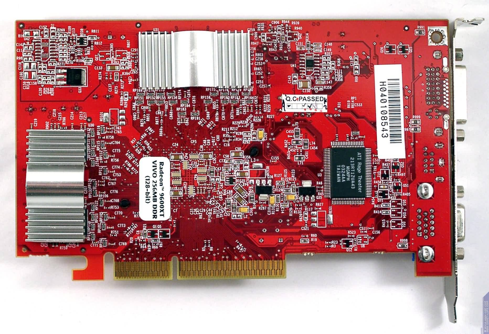 - RADEON 9600XT (128/256MB DDR): 500/300 (600) MHz, 128bit шина обмена с памятью, 4 конвейера рендеринга и 4 текстурных блока (пиковая скорость закраски — 2000 мегапикселей и мегатекселей в секунду), DirectX 9.0;