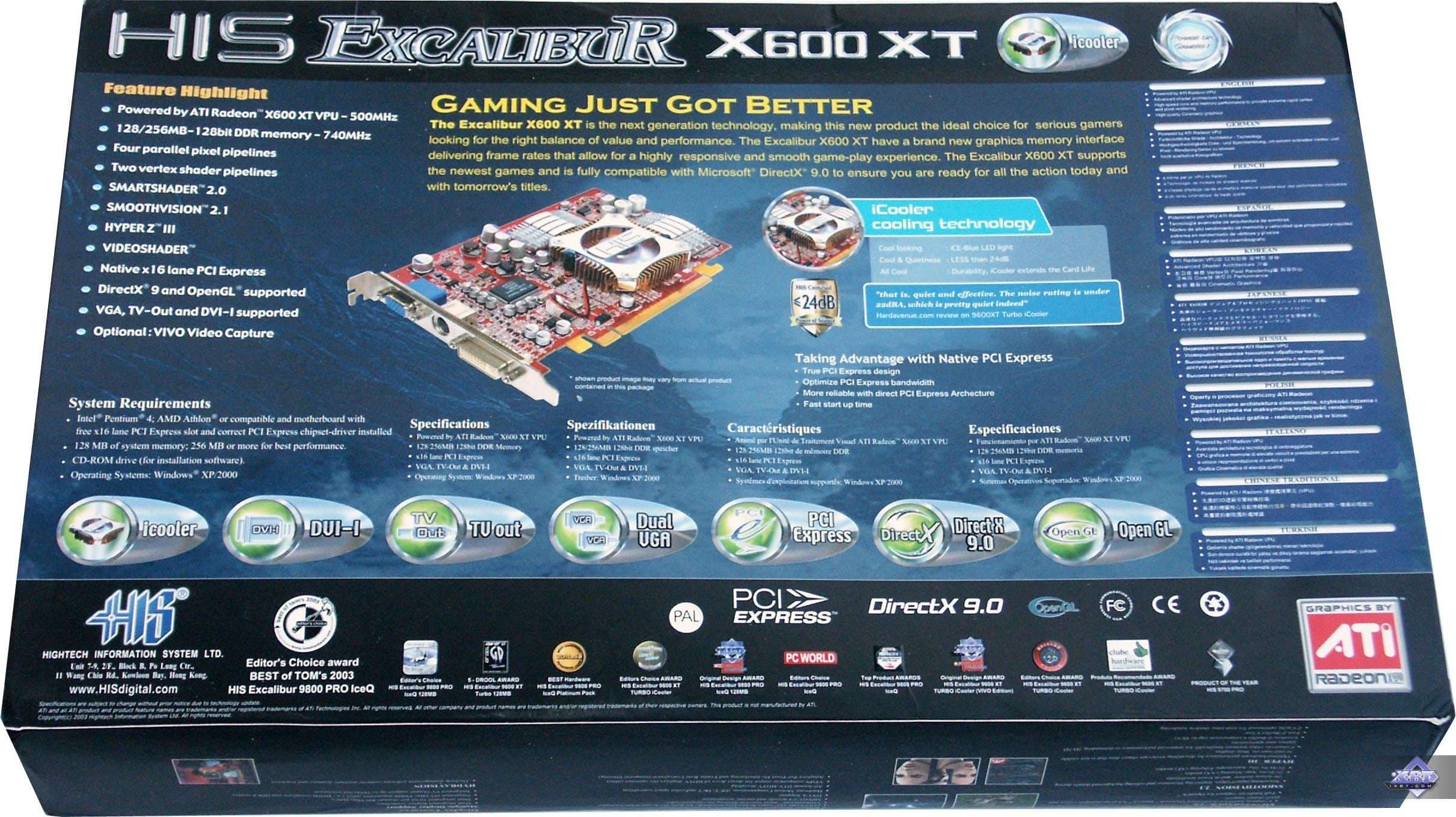 | HIS Excalibur RADEON X600XT Limited Edition VIVO | Reference card ATI RADEON 9600XT |