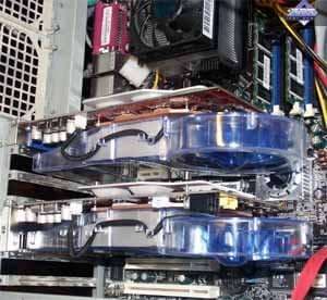 Шутки ради я поставил две карты от HIS в стенд на базе nForce4 SLI. Смотрятся очень красиво. Явно не хватает адаптера для их соединения в нечто подобное SLI :-). Это не намек. Просто ради любопытства. :)