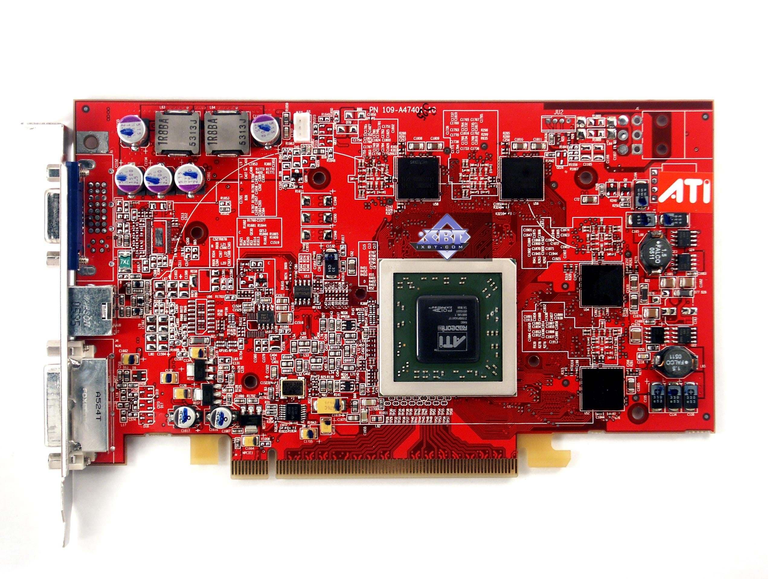 Интересно отметить, что маркировка чипа для GTO обозначает просто X800 (хотя он производился на основе R430). А для GT в ход пошли ранее выпущенные X800SE с такой же аппаратной блокировкой конвейеров до 8 (и есть вероятность, что 16 конвейеров тут изначально были невозможны из-за брака).
