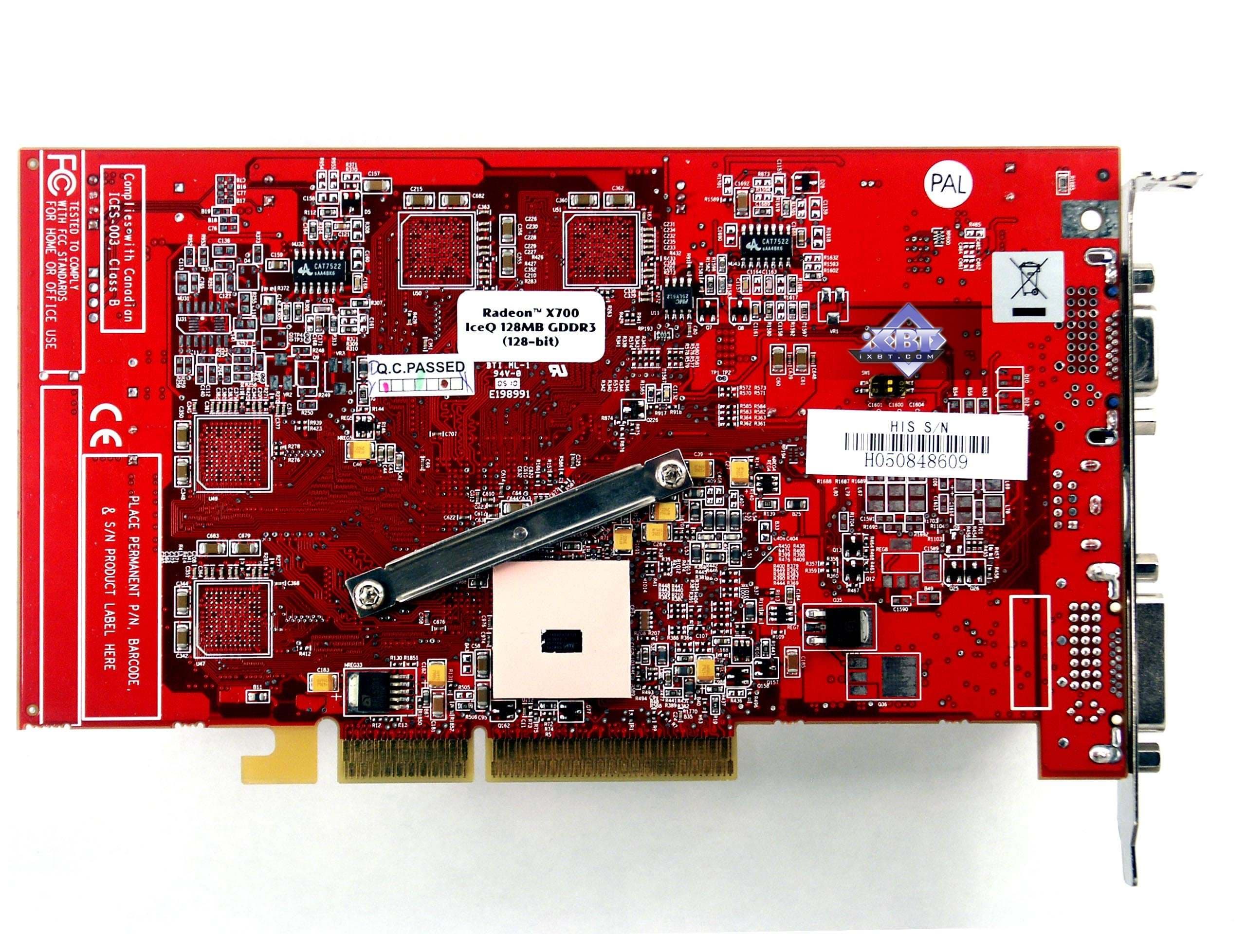 - HIS IceQ II RADEON X700 AGP 128MB — изделие при своей цене в 120 долларов неплохо соперничает с конкурентами в этой же категории, хотя, конечно, не столь блестяще, как предыдущие карты. Режима iTurbo у платы нет, поэтому использовать потенциал GDDR3 памяти придется вручную (негоже, когда 2.0ns память работает на 700 МГц! :). Плата оснащена радиаторами на памяти и прекрасным кулером от Arctic Cooling, поэтому вполне возможен разгон до X700 XT и даже выше. Со стабильностью в работе и качеством в 2D также все в порядке!