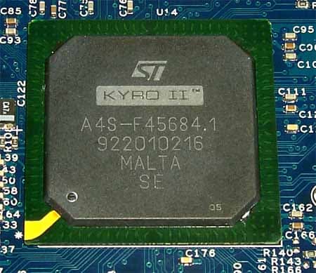 Да, общий тон нашего повествования задан уже эпиграфом. Невеселая картина, сразу скажу. Как бодро начиналось все! PowerVR, как подразделение Imagination Technologies, и STMicroelectronics образовали тандем, плодом которого стал графический процессор KYRO (разумеется, до KYRO был еще Neon 250, но он потерпел полный провал, поэтому его не учитываем). Это был успех! Пусть не оглушительный, но относительно GeForce2 MX новый продукт смотрелся явно перспективнее, несмотря на намного более скромную архитектуру и отсутствие Hardware T&L.