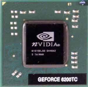 Теперь маятник нашего рассмотрения относим резко в другую сторону, и получаем… GeForce 6200 TurboCache. Да, это по сути Low-End последнего поколения, то есть на базе той же архитектуры были созданы чипы, где урезаны конвейеры и шина обмена с памятью. И в результате вышел в свет NV44, то бишь тот же NV43 (GeForce 6600), урезанный вдвое (4 пиксельных и 3 вершинных конвейера), и снабженный 64-битным контроллером обмена с памятью (то есть 128 бит тут уже невозможно в принципе).