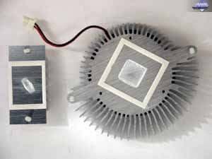 Простой прямоугольный пластинчатый радиатор из алюминиевого сплава. Вентилятора нет, да он и не нужен для такого процессора. | ![]() |