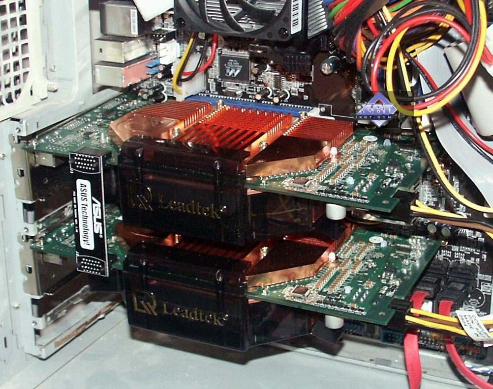 Видеокарты от Leadtek на базе 6800 Ultra имеют очень внушительную систему охлаждения, и поэтому при установке они не смогут встать в обычные системные платы с двумя соответствующими слотами: