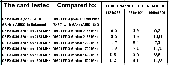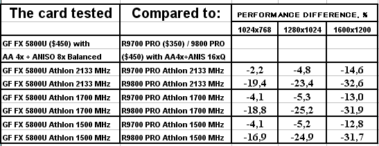 - Малая доступность и очень высокие цены на GeForce FX 5800 Ultra;