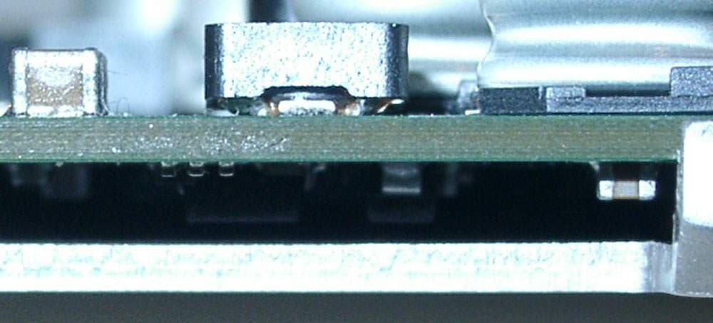 Завершая изучение системы охлаждения, обратим внимание на то, что задняя часть большого кожуха-радиатора крепится не только на винтах, но и цепляется к самой PCB, поэтому в целом конструкция вышла очень жесткой и устойчивой.