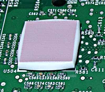 И напомним, что сзади микросхемы памяти охлаждаются исключительно вышеупомянутым алюминиевым кожухом-радиатором через специальные довольно толстые термопрокладки (гарантирующие прижатие радиатора к памяти).