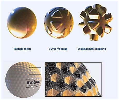 Карта смещений отвечает за «грубый» рельеф, смещая вершины треугольников в направлении нормали, заданной для этой вершины. При необходимости, совместно с картой смещений можно использовать и традиционную карту рельефа (bump map) для создания более тонких «попиксельных» деталей.