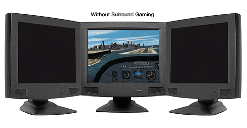 Ожидается, что на выставке E3 в этом году будет демонстрироваться много разных игр в широком (180 градусов охвата зрения) исполнении, сразу на трех мониторах. Как вы уже догадались на карте, на базе Parhelia-512. В комплекте программного обеспечения идет специальная утилита, позволяющая играть во многие популярные игры в широком дву- или трехэкранном режиме.