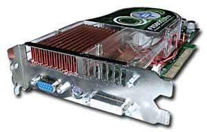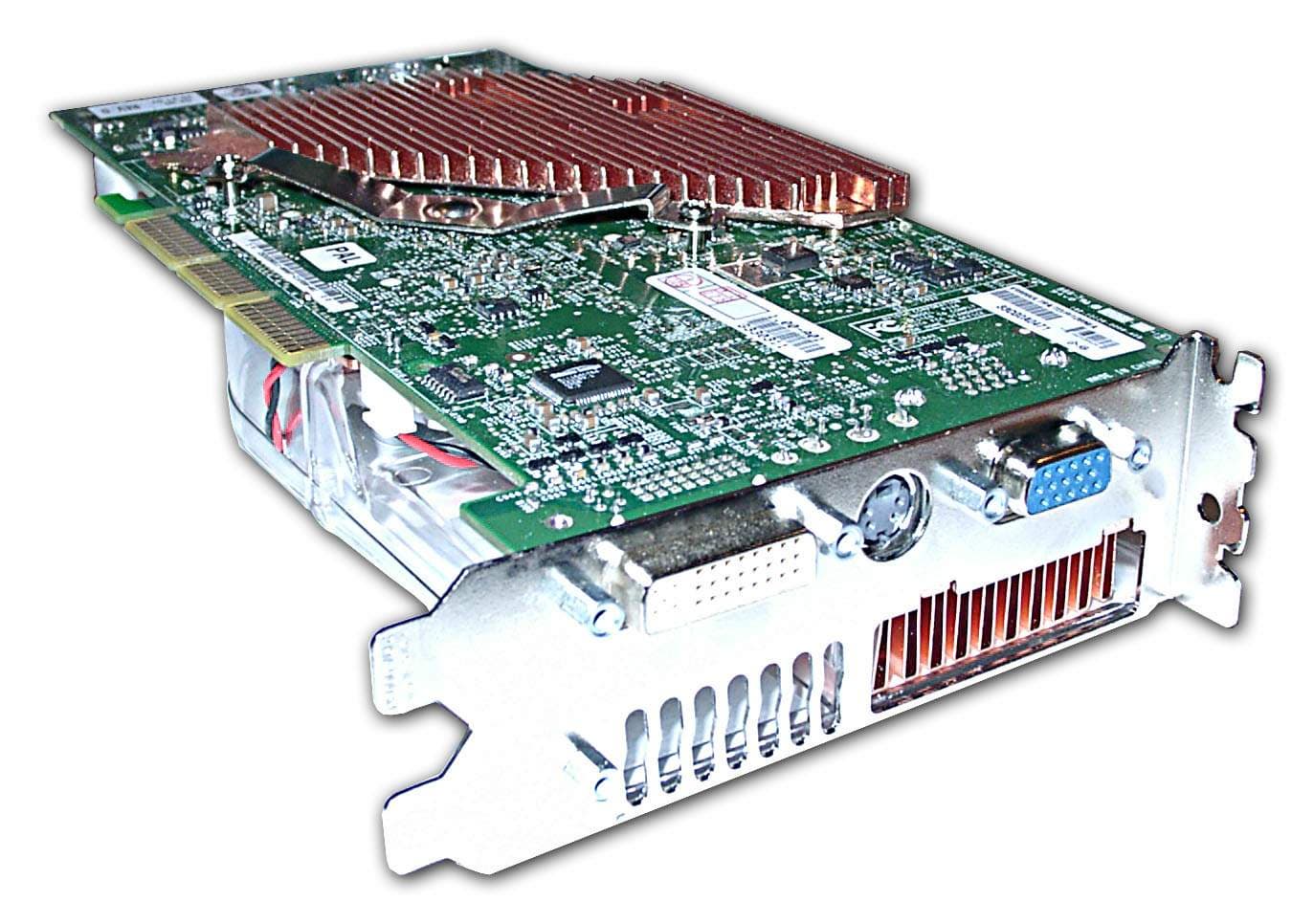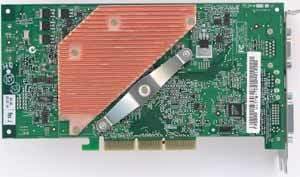 | Карта основана на AGP X2/4/8 интерфейсе, имеет 128 мегабайт DDR II SDRAM памяти, расмещенной в 8-ми микросхемах по обеим сторонам PCB. Интерфейс обмена с памятью 128бит. На карте установлены микросхемы памяти Samsung марки K4N26323AE-GC1K, форм-фактора BGA. Максимальная частота работы — 550 (1100) МГц, поэтому можно сделать вывод, что время выборки 1.8 нс. По умолчанию память работает в 3D на частоте 500 (1000) МГц, в 2D — 300 (600) МГц. | ![]() |