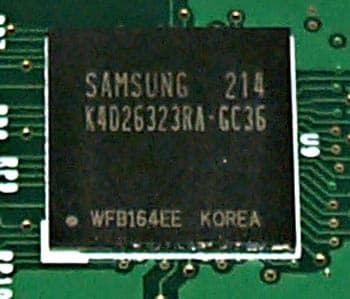 | Плата комплектуется микросхемами памяти от Samsung (BGA) со временем выборки 3.6ns. Максимальная частота работы 275 (550) МГц, память же работает на частоте 256 (513) МГц. Чип тактован на 275 МГц | ![]() |