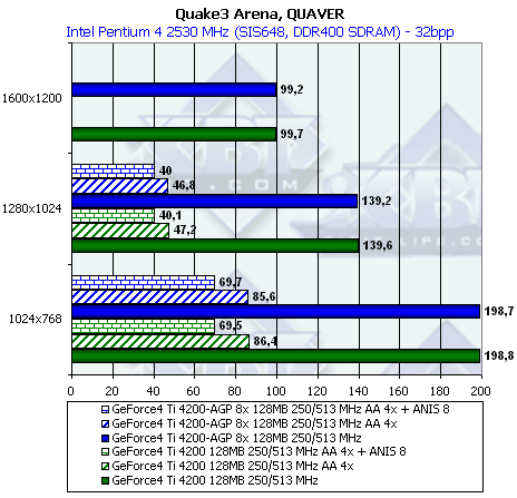 Полагаю, что единичный случай обгона NV28 своего прежнего собрата Ti 4200 в разрешении 1024х768 мало о чем говорит, ситуация в целом такая же.