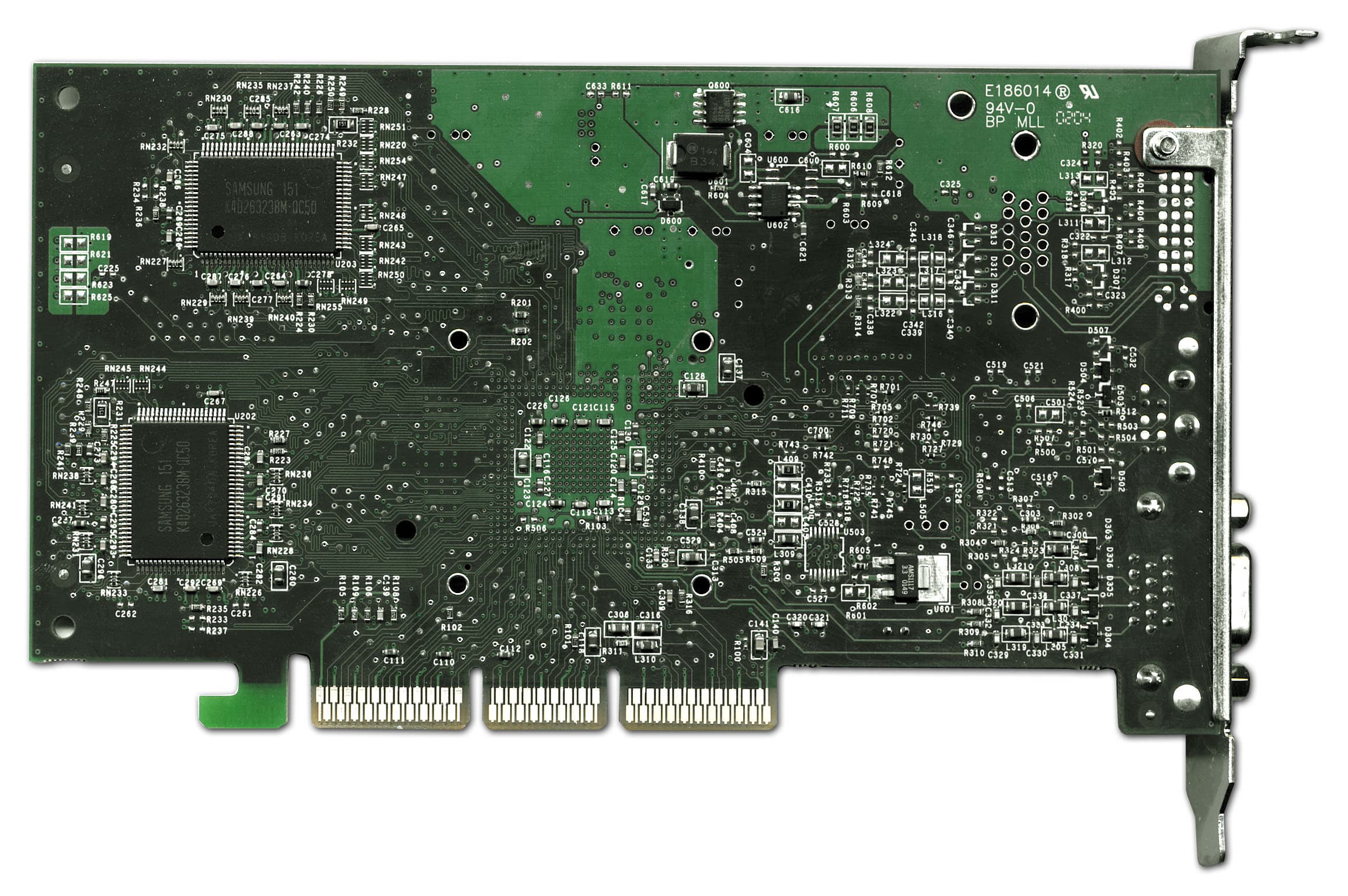 Маркировка на чипе отличается от той, что мы могли многократно видеть ранее, только суффиксом "8х", что как раз и означает поддержку AGP 8x.