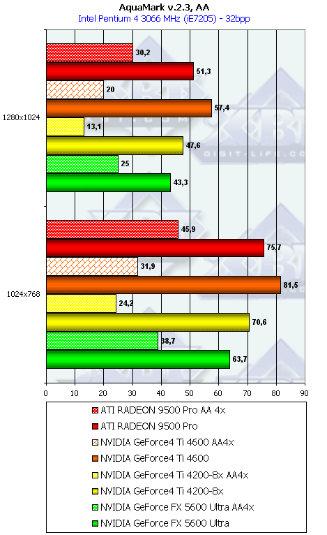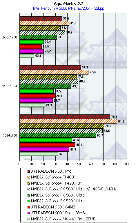 - AquaMark (Massive Development) игровой тест, демонстрирующий работу платы в DirectX 8.1, Shaders, HW T&L.