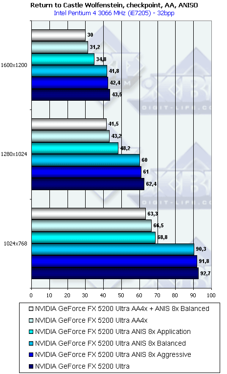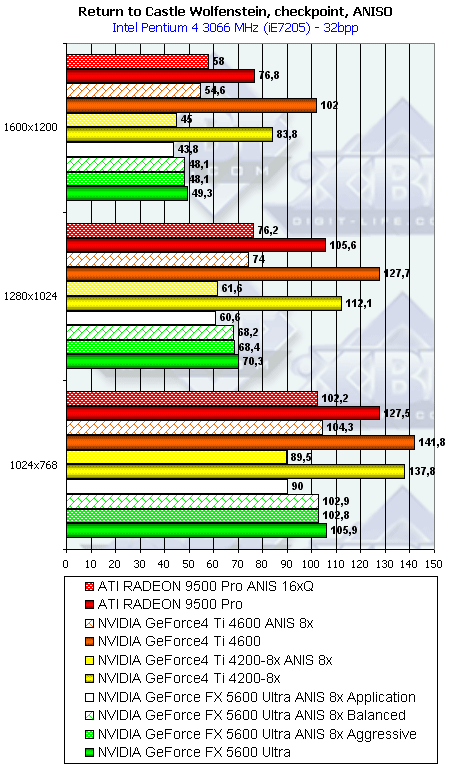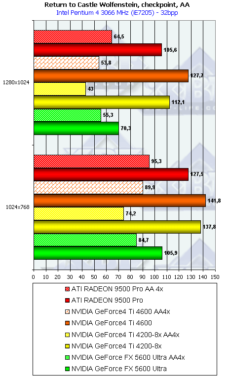 - Return to Castle Wolfenstein (MultiPlayer) (id Software/Activision) — OpenGL, мультитекстурирование, Checkpoint-demo, настройки тестирования — все на максимально возможном уровне, S3TC OFF, конфигурации можно скачать тут