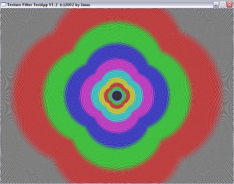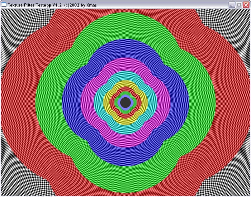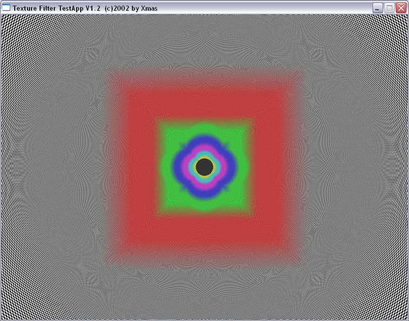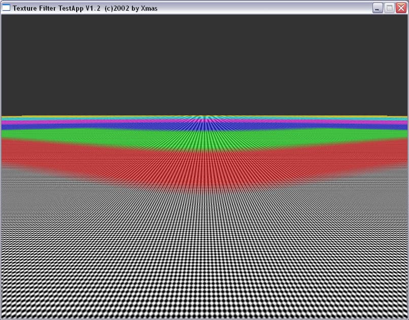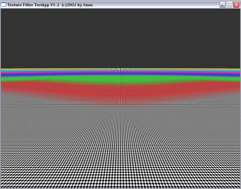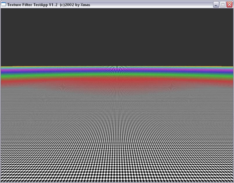 Мы прекрасно видим, что между подвидами анизотропии есть разница не только в скорости, но и в качестве. Идет некая манипуляция MIP-mapping-ом, заодно и трилинейной фильтрацией. Это четко видно на примере XMAS — программы для тестирования анизотропии в OpenGL.