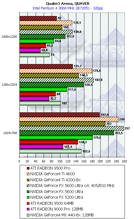 Что можно сказать? Превосходная отлаженность драйверов NVIDIA под игры на Quake3-движке делает свое дело, и новоиспеченные "середнячки" выиграли сражение.