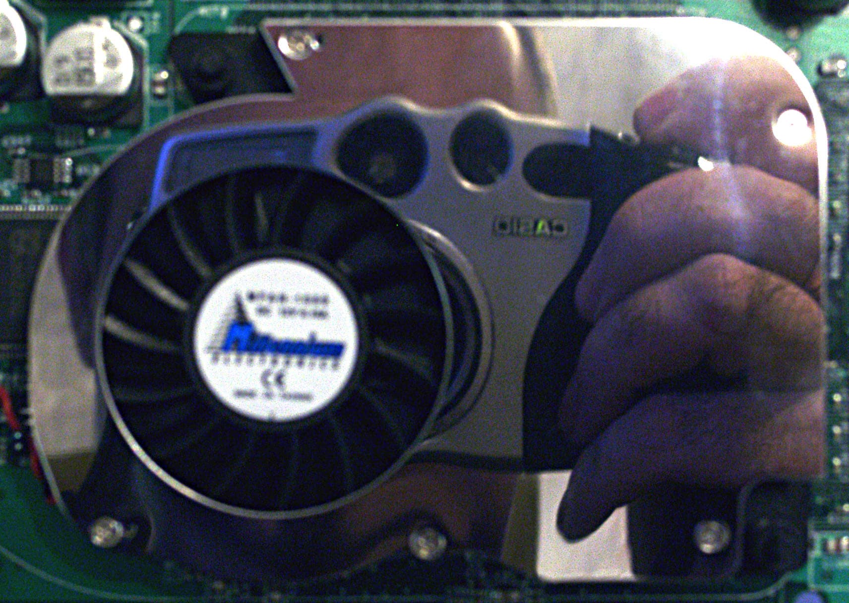 Охлаждающее устройство представляет собой закрытый радиатор, через который вентилятор гонит воздух. Крышка радиатора — практически зеркальная.