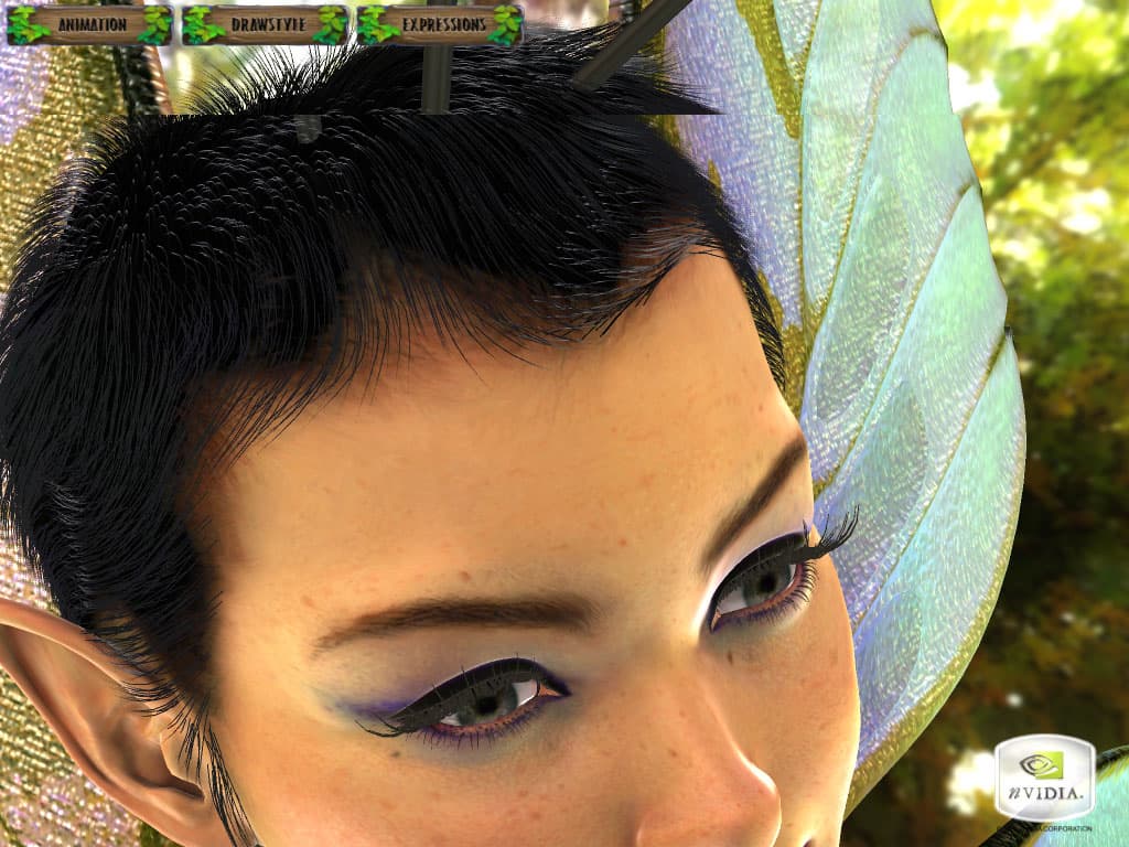 - Для реалистичного отображения волос героини используются физические модели, а также анизотропное освещение.