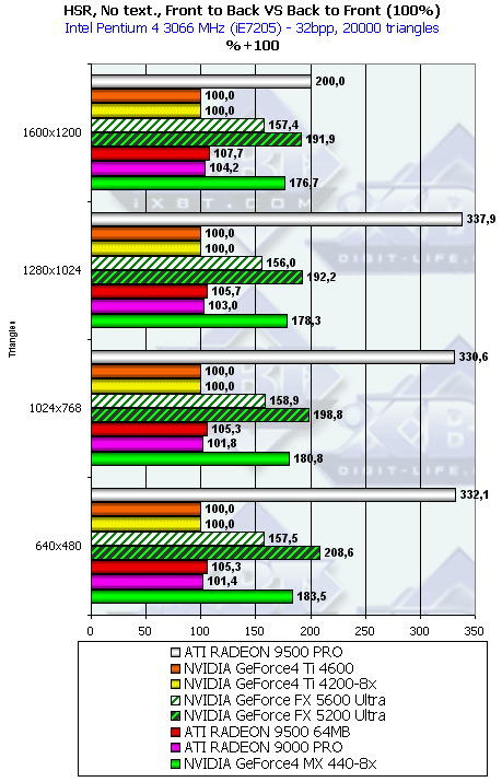 Да, теперь R300 лидирует во всех вариантах (и 8 и 4 конвейера), лишний раз подтверждая сделанные нами ранее выводы о более слабой вычислительной и более высокой текстурной производительности семейства NV3X.