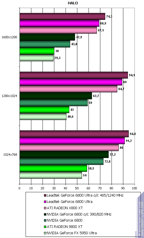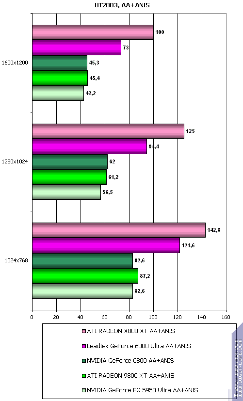 - Leadtek GeForce 6800 Ultra против ATI RADEON X800 XT поражение, если учитывать тяжелые режимы