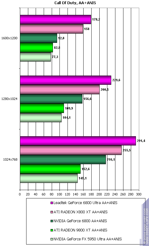 - Call of Duty (MultiPlayer) (Infinity Ward/Activision) OpenGL, мультитекстурирование, ixbt0104demo, настройки тестирования все на максимально возможном уровне, S3TC ON