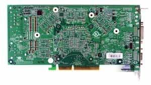 | Карта имеет интерфейс AGP x8/x4, 256 МБ памяти GDDR3 SDRAM, размещенной в 8-ми микросхемах на лицевой стороне PCB. Микросхемы памяти Samsung (GDDR3). Время выборки у микросхем памяти 2.0 ns, что соответствует частоте работы 500 (1000) МГц, на которой память и работает. Частота работы GPU 350 MHz. Шина обмена с памятью — 256 bit. | ![]() |