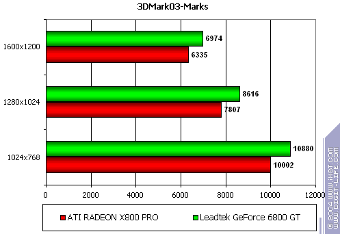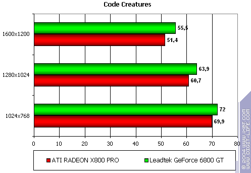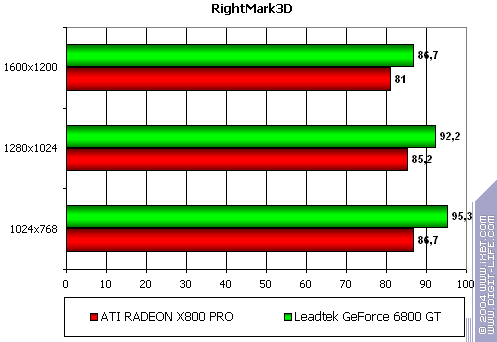 - Leadtek WinFast A400 GT TDH против ATI RADEON X800 PRO выигрыш с хорошим счетом. Оптимизации, оптимизации… (в хорошем смысле этого слова, ибо проблем с качеством нет).
