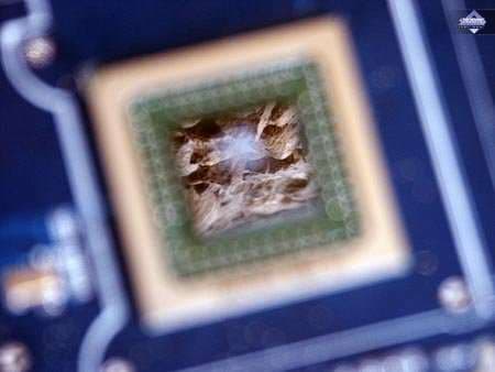 Под кулером, как и следовало ожидать, находится герой дня, процессор GeForce 6800GT.