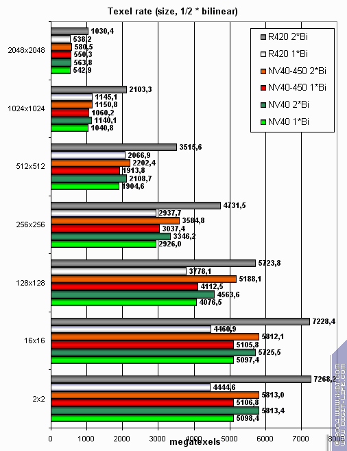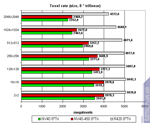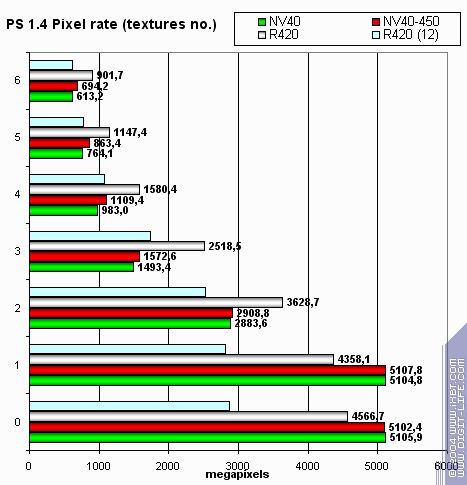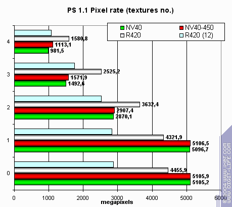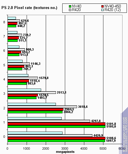 Итого, по пиксельным шейдерам: 450 МГц позволяют, порой, выровнять производительность с R420. Но не демонстрируют того, что можно было бы назвать четким лидерством.