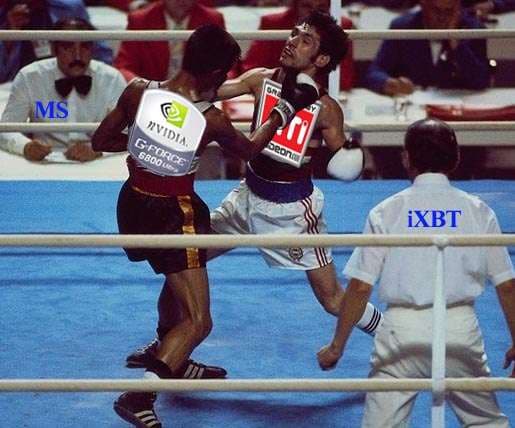 И если раньше мы могли говорить о том, что NV38 дотягивает до R360 только в старых играх (подчас OpenGL, где конек у драйверов от NVIDIA), да и то с помощью подпорок из оптимизаций и т.п., то теперь оба новых продукта выступают с равными весовыми категориями и полноценно конкурируют друг с другом.