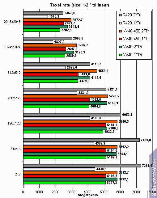 То есть, даже 450 МГц не дает твердой победы NV40 в области синтетических тестов.
